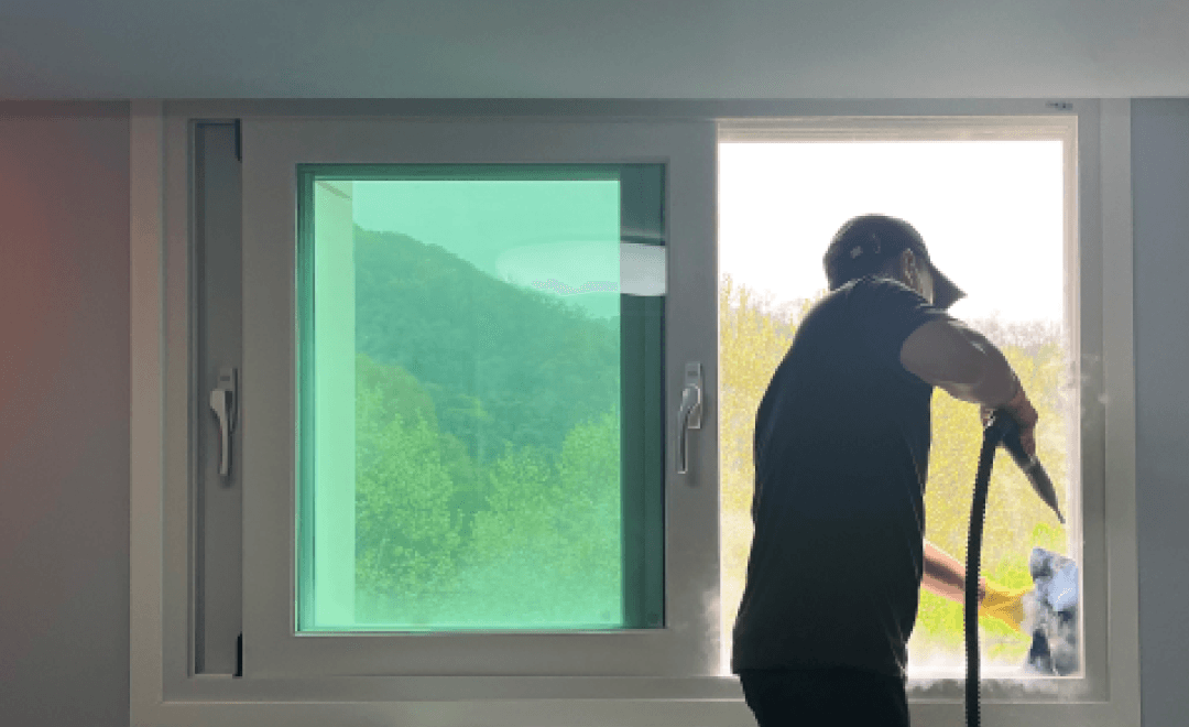 벽과 천정의 먼지를 털고, (프리미엄 서비스의 경우 미세하게 벽에 흡착돼 있는 먼지를 기계로 떨어뜨립니다) 모든 서랍을 빼서 닦아냅니다. 바닥의 먼지는 스팀 청소를 통해 깨끗하게 정리합니다.