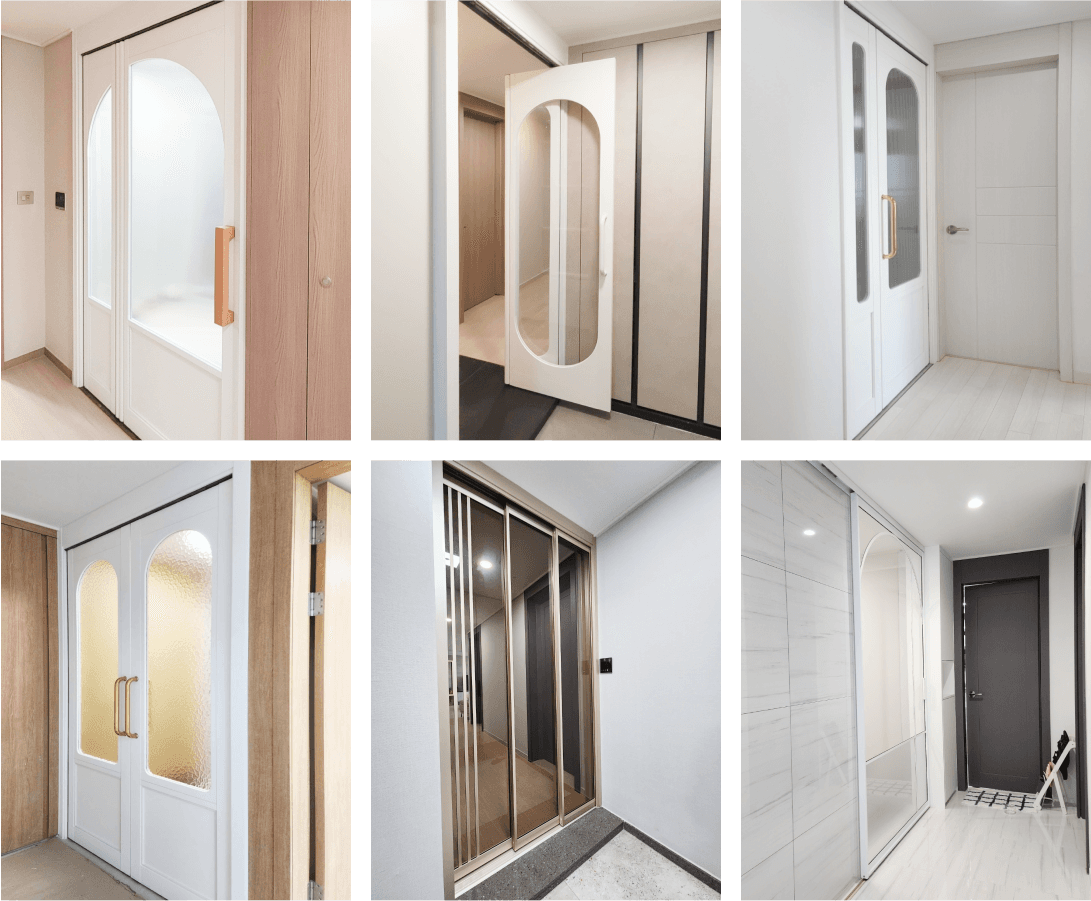 이뿐 아니라 집에 어울리는 컬러, 도어 하부, 유리의 종류, 디자인, 문고리 등 고를 건 너무 너무 많지만… 이 모든 건 다 헬로입주가 도와드립니다.