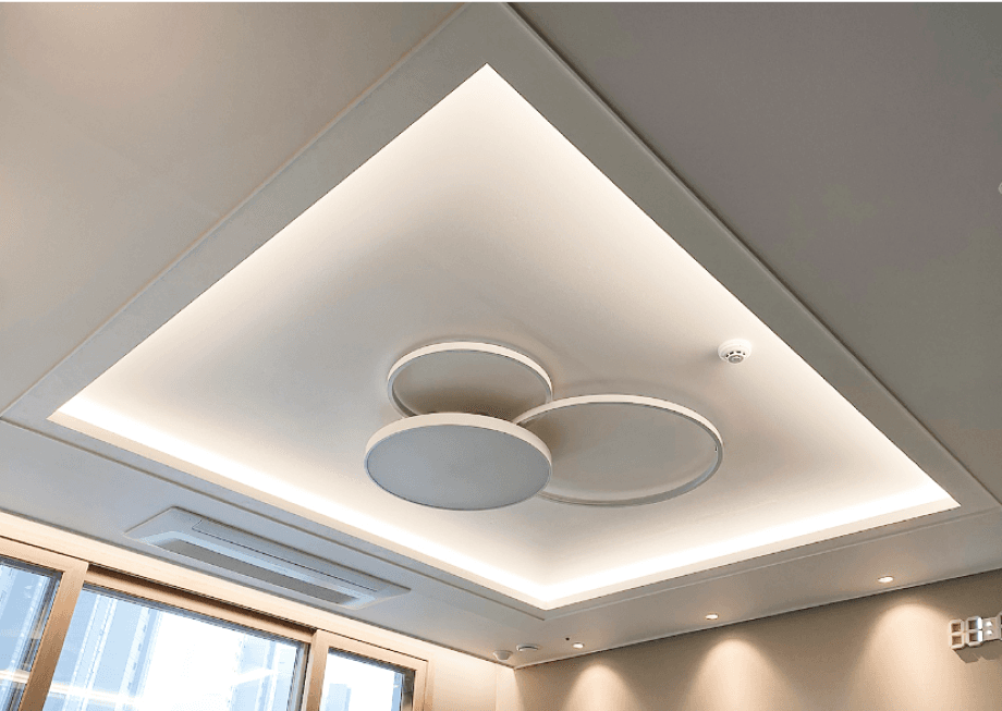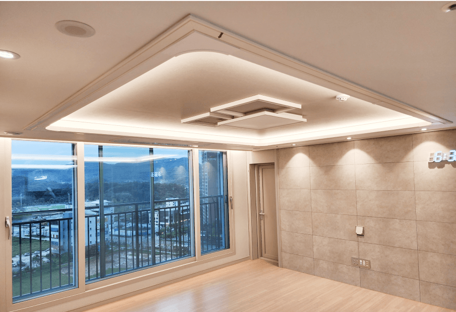 LED 등이 숨겨진 채로 가구를 직접 비추지 않고 천정에 반사된 효과를 내는 것이 우물 간접 조명인데요.