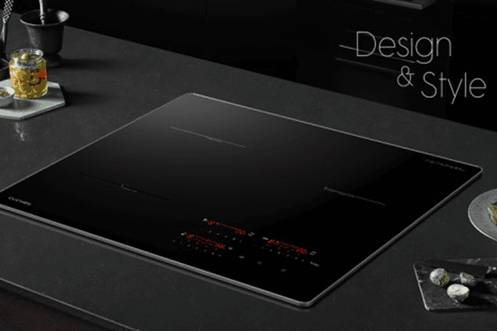 인덕션은 유리 세라믹 상판으로 매끈하고 심플한 디자인이 특징이에요. 블랙·화이트·메탈 톤이 주방 인테리어와 잘 어울리고, 빌트인 방식은 가구와 일체감을 줘 모던하고 깔끔한 공간을 완성해요.